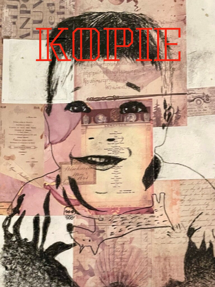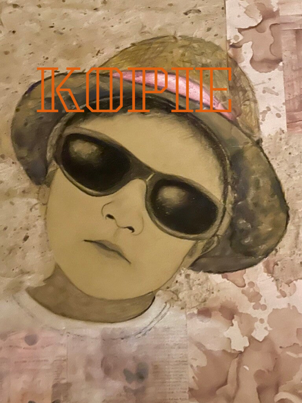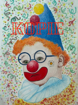met stift, potlood en kleurpotlood kleinzoon getekend op beplakte ondergrond