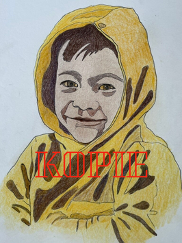 portretten van mijn kleinkinderen bewerkt en met kleurpotlood getekend