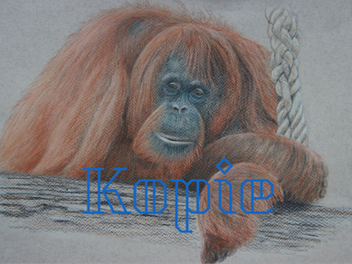 Orang-oetan Wattana uit de Apenheul. Kleurpotlood op