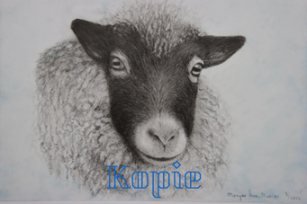 gemaakt op drafting film met kleurpotlood en het schaap met zwarte kop met grafietpotlood