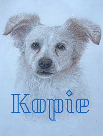 Wasbeer getekend met kleurpotlood op A4 ruw papier Hond met kleurpotlood in opdracht