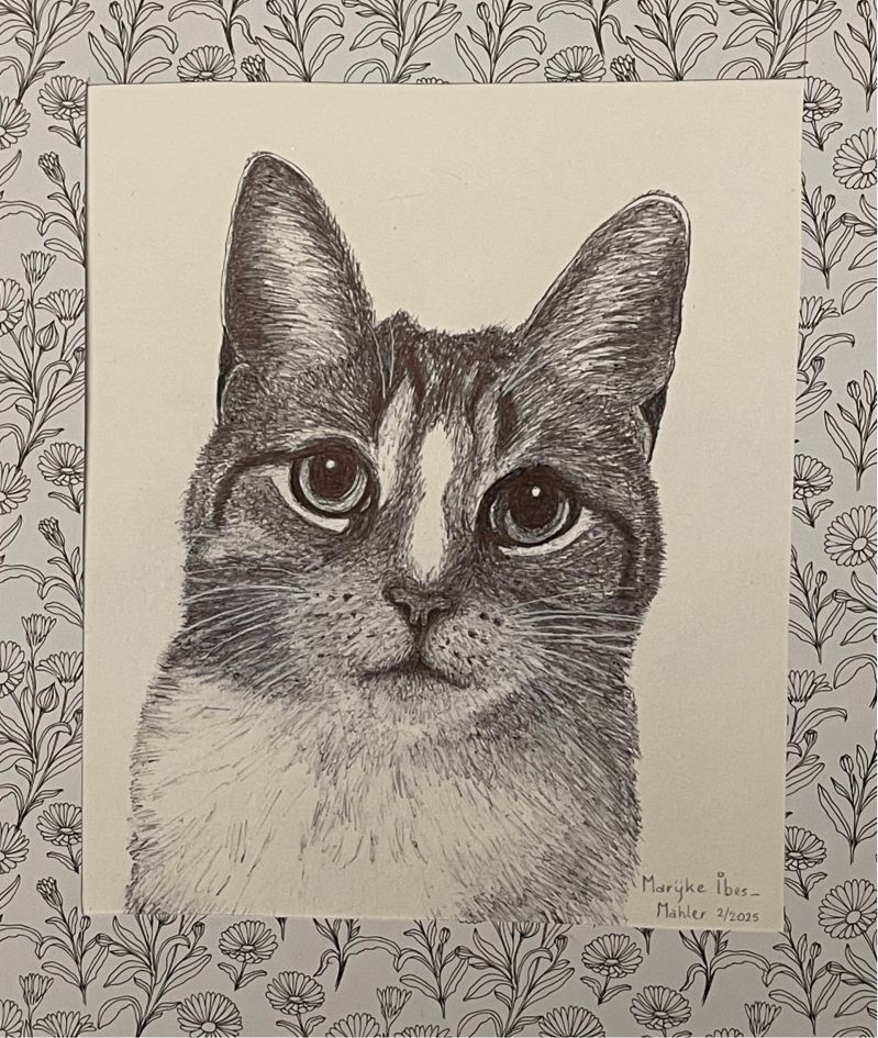 Poes Epoxy.. getekend in opdracht met een zwarte BIC balpen.