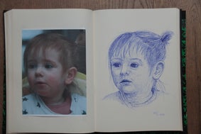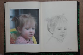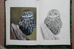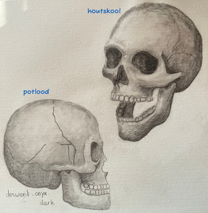 links de voorbeelden, rechts mijn tekeningen. Gemaakt met potlood