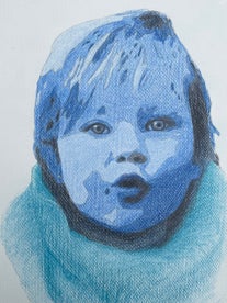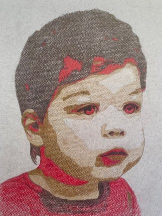 Bewerkte foto getekend met kleurpotlood. op grijs pastelpapier.