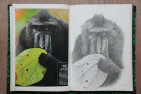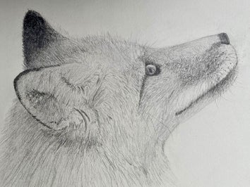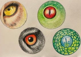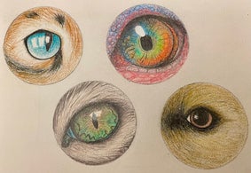 Dierenogen gemaakt in schetsboek als voorbeeld voor de cursus tekenen.