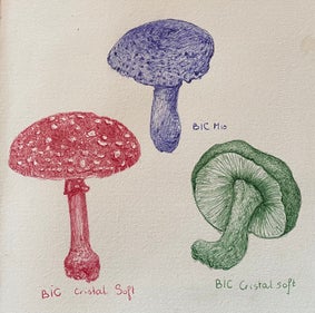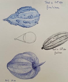of met balpen (bv Rembrandt) waarbij ik niets uit kan gummen.