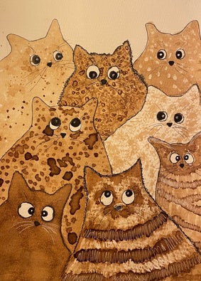 onderstaande afbeeldingen zijn ingeschilderd met koffie.