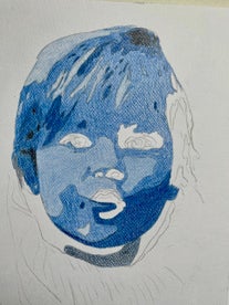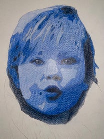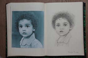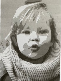 Experiment. Een bewerkte foto (de meest linkse zw/w) getekend met kleurpotlood op pastelpapier. Best wel goed gegaan.