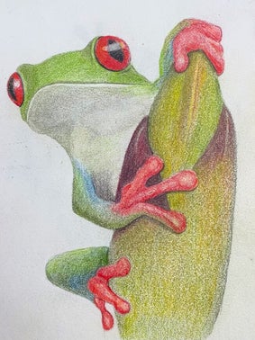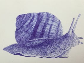 de meesten zijn gemaakt met kleurpotlood. De slak is getekend met balpen..